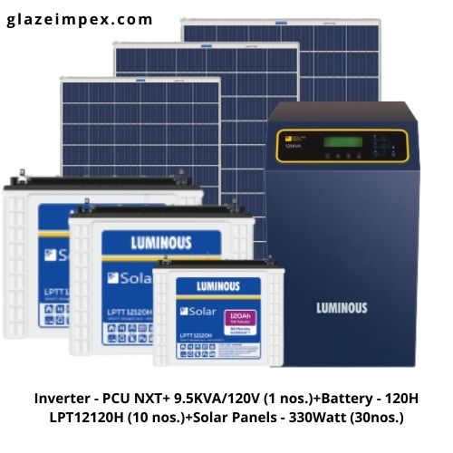 Do You Searching for an off-grid solar system Set then the Luminous PCU NXT+ 9.5KVA Inverter With Battery 120H and 330W Panel will be a great choice for you. Unlike other brands, Luminous is known for making high-end inverters, batteries, Solar system, Online UPS, and Home UPS that are durable and extremely practical. Glazeimpex is a well-known e-commerce platform for a qualitative range of Solar system, Online UPS, Home UPS, Inverter, Panel. The entire Luminous PCU NXT+ 9.5KVA Inverter With Battery 120H and 330W Panel is manufactured using quality-assured material and advanced techniques, making them rise to the standard in this challenging field.