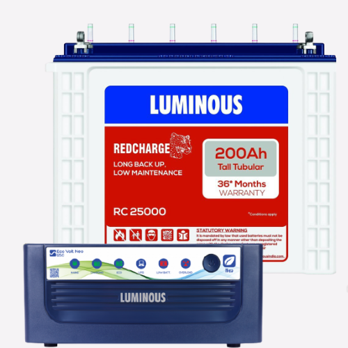 Do You Searching for the best inverter battery 200ah in India, then the Eco Volt Neo 950 Sine Wave Inverter + 200ah RC25000 Tall Tubular Battery will be an excellent choice for you. Unlike other brands, Luminous is known for making high-end inverters and batteries that are durable and extremely practical. Sinewave technologies that ensure quiet Performance, fast Charging, More Load, Longer Battery Life and Longer Backups.