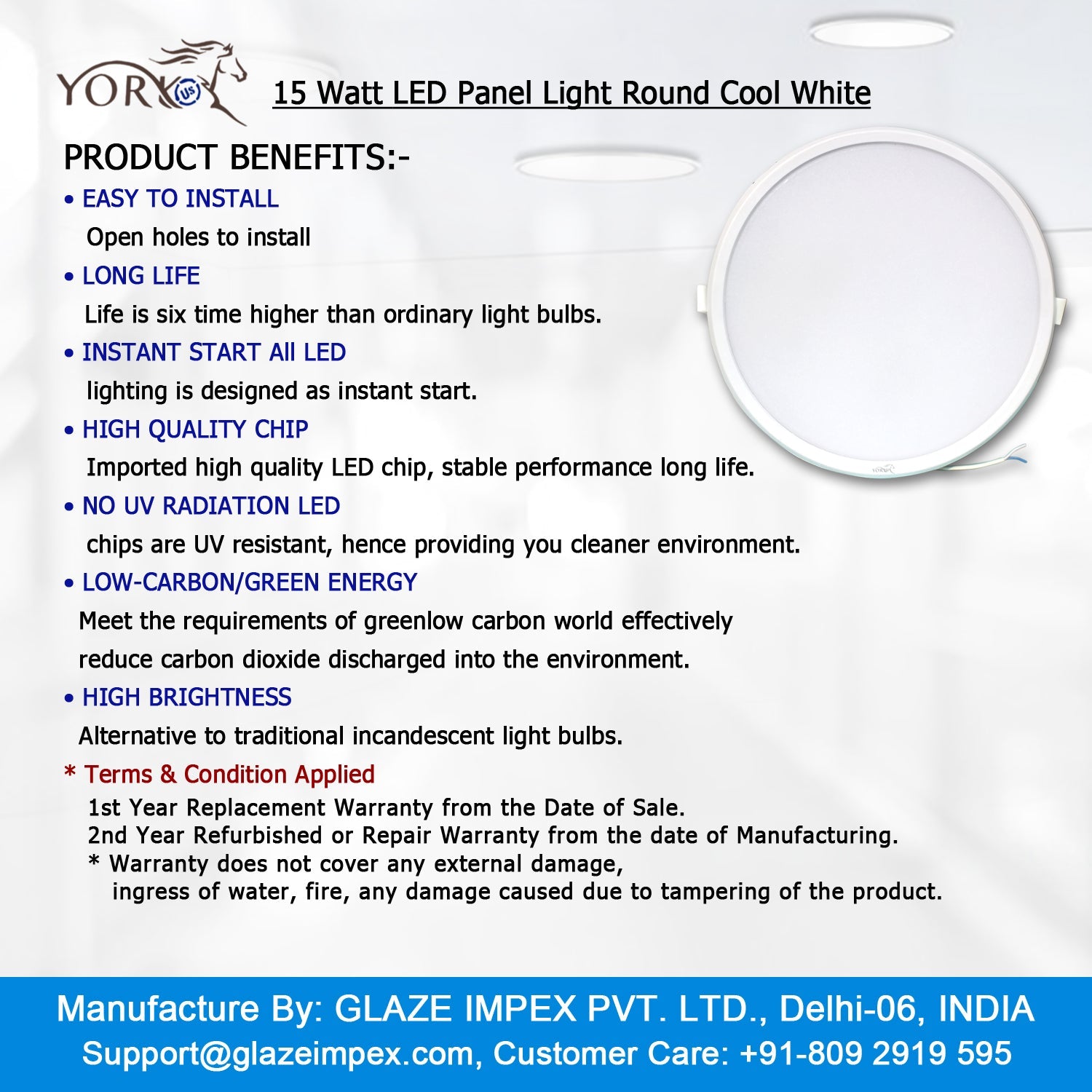 YORKUS LED Presents export quality internationally certified by AIAO-America, using fast and advanced technology with extra features such as Imported semiconductors and Instant Start light-emitting diode (LED). High surge-protected integrated circuits, up to 2KVA. gives long life 6 times higher than ordinary light bulbs. LED Chips are UV resistant hence providing you with a clean environment. High brightness alternative to traditional LED light bulbs. Easy to Install-Open holes to install Decorative design makes your kingdom light & bright