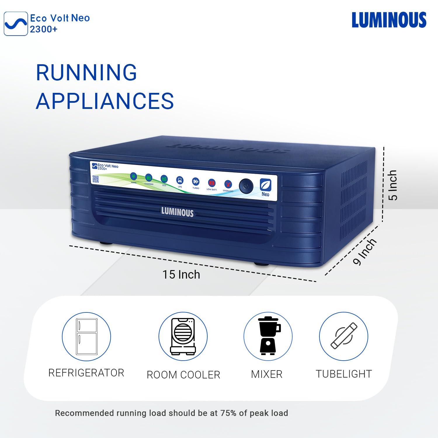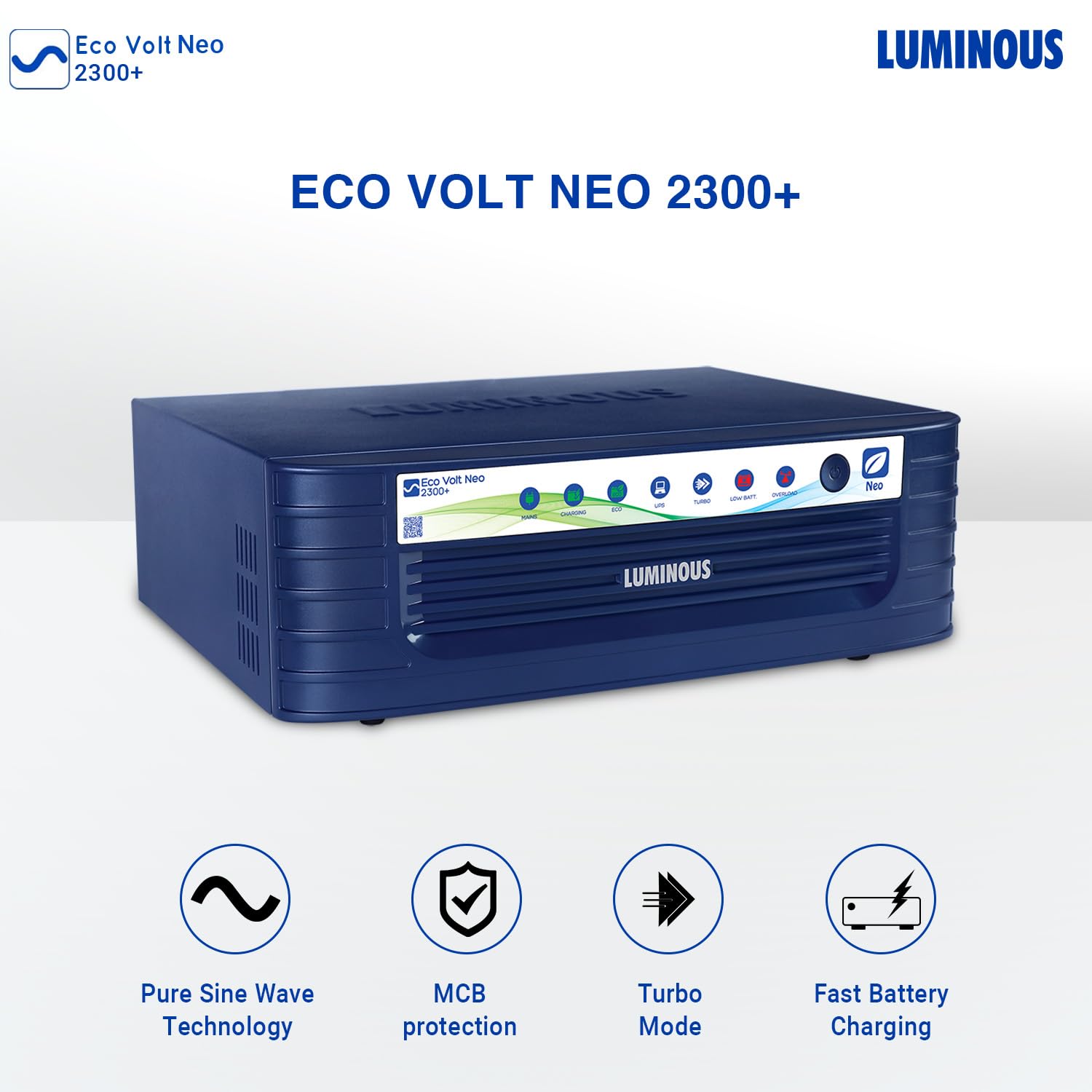 The Luminous 2300 Eco Volt 24V inverter is an ideal choice for areas with frequent power outages, providing reliable backup and optimal performance for households and businesses.