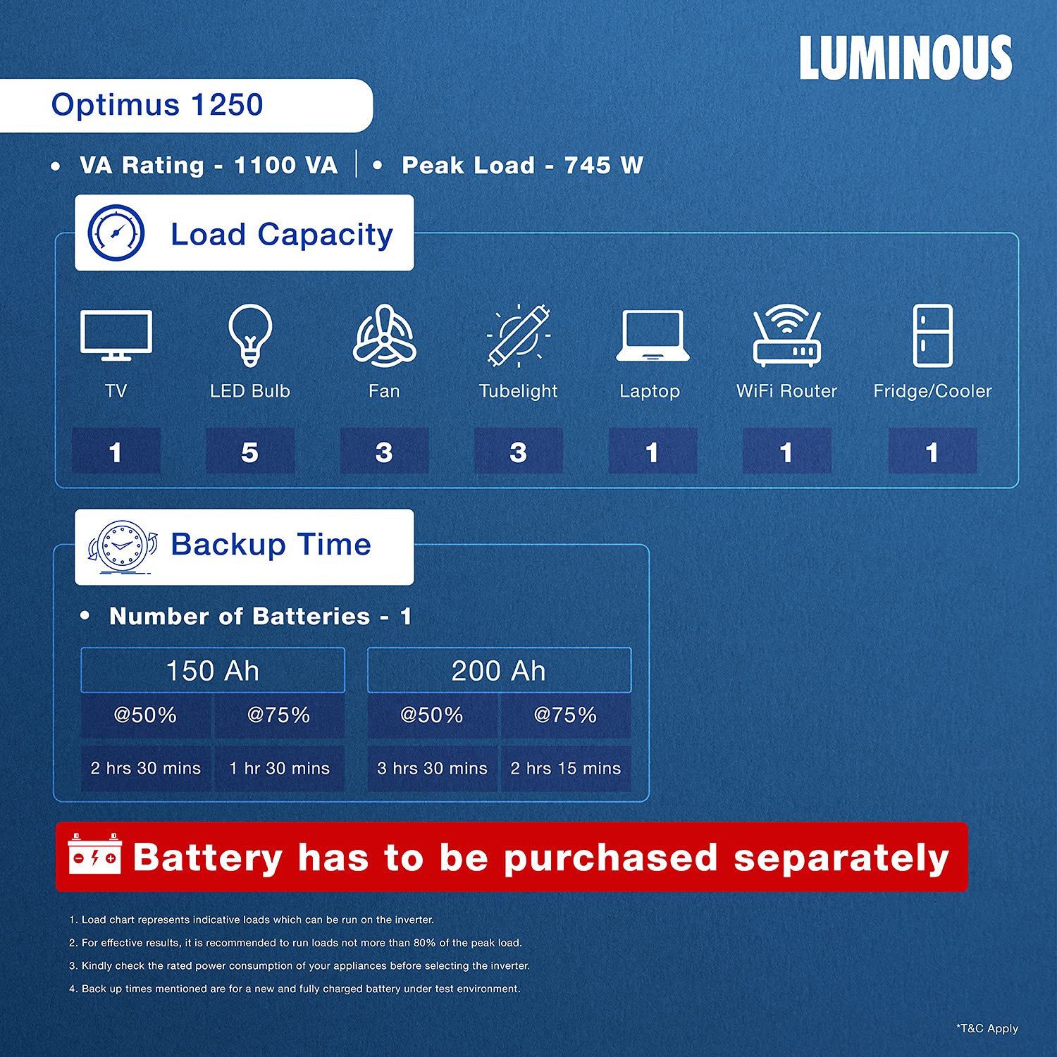 Luminous Optimus 1250 Pure Sine Wave Digital Display